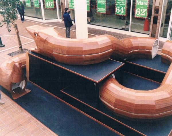 The snake appeared in 1986, when the centre was opened to the public (I remember many an afternoon spent furtively leafing through Viz annuals at the bookshop). The black and white photo is from the Gazette, while the other two are from Peter Hand himself. If you’re interested in seeing his other works you can find info here.