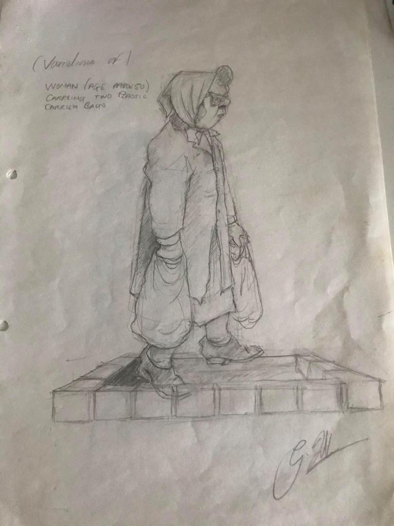 6 thoughts on “Gardener Tending His Flowers / Shopper and Child (Middlesbrough, Graham Ibbeson, 1984)”