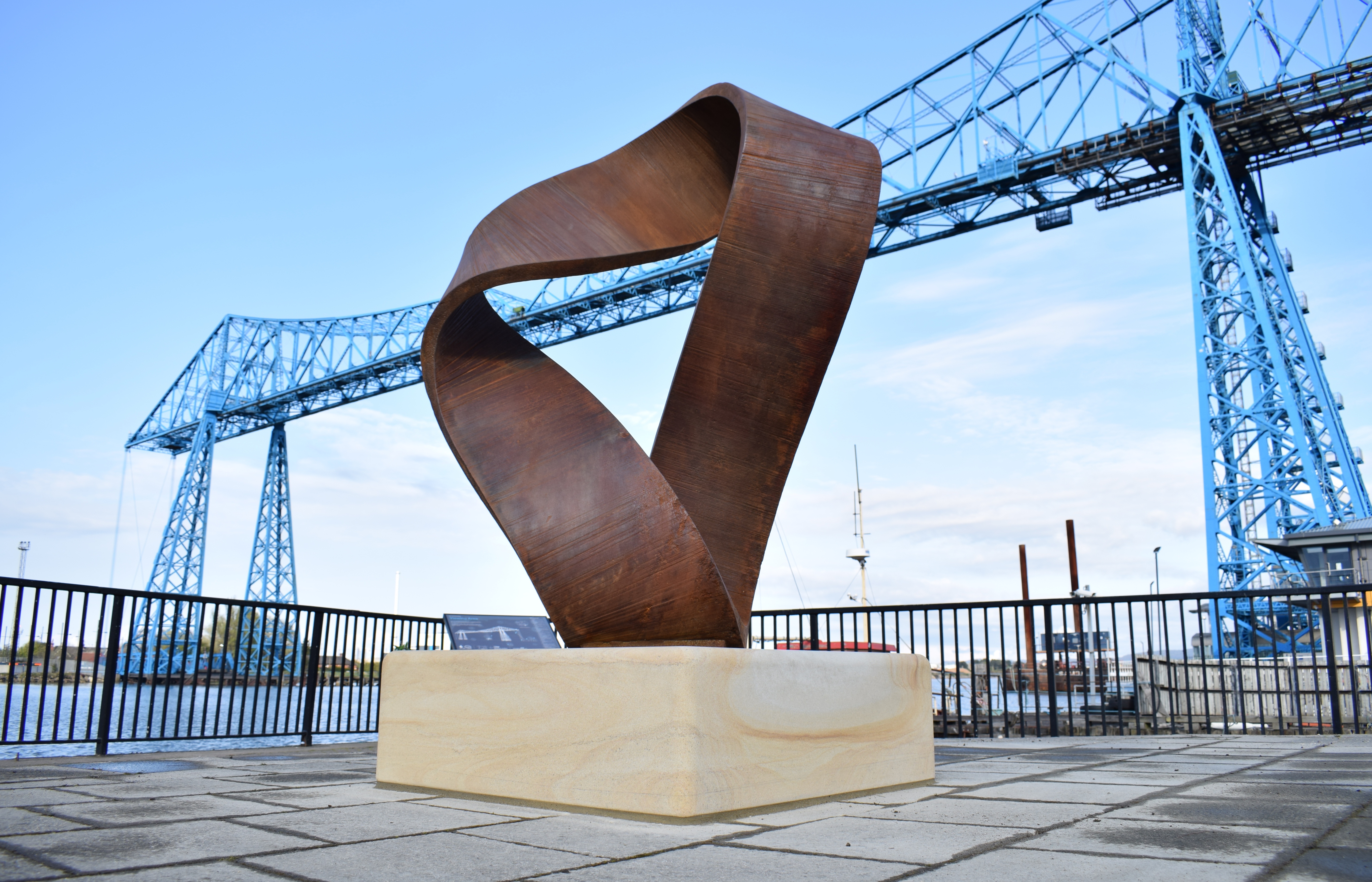 Part of the Tees Sculpture Trail from River Tees Rediscovered, Pat Wall’s ‘Crossing’ is a cast iron Möbius strip on a sandstone plinth, with the infinite loop representing the link between the two banks of the river.