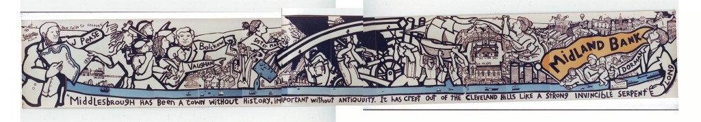 After a successful initial piece (on Oxford Street in London), Crummy was asked to complete 10 more artworks including ones for the damaged Middlesbrough branch of Midland (next to the Town Hall).