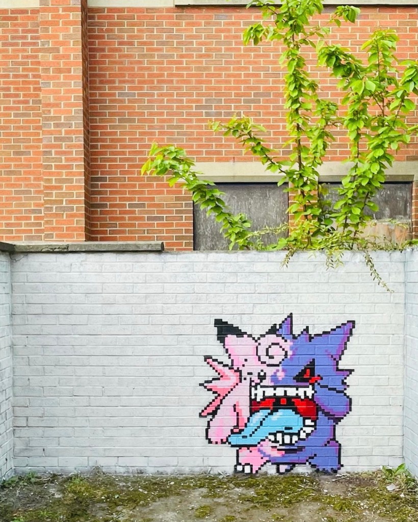 I started painting on the streets around September 2020. I had always been a big fan of the old video games and had for many years hand-drawn pixel art. I then arrived at the thought that I’d never seen these pixelated images painting in public as street art, and knew it would be quite striking and different given the juxtaposition of the digital image and a real world environment. I calculated how best to approach doing this and then practiced spraying characters for months on my garage walls before eventually taking to the streets of Middlesbrough. The first being a fairly simple ‘Boo’ ghost from the Mario games.