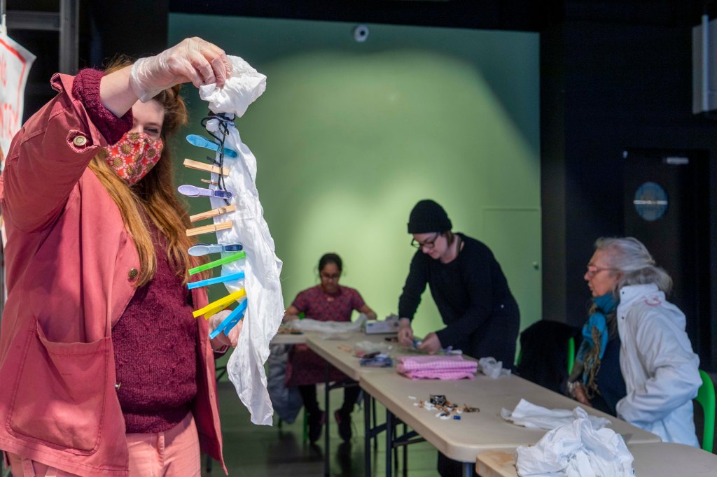 Navigator North invited the people of Middlesbrough to use natural materials (such as alum, bloodroot and madder) to produce red-toned dyes for cottons and silks, in what Blood describes as a “futile attempt of trying to achieve the Boro red shade”. The fabrics were then hand-sewn by the artist into a larger textile patchwork piece.