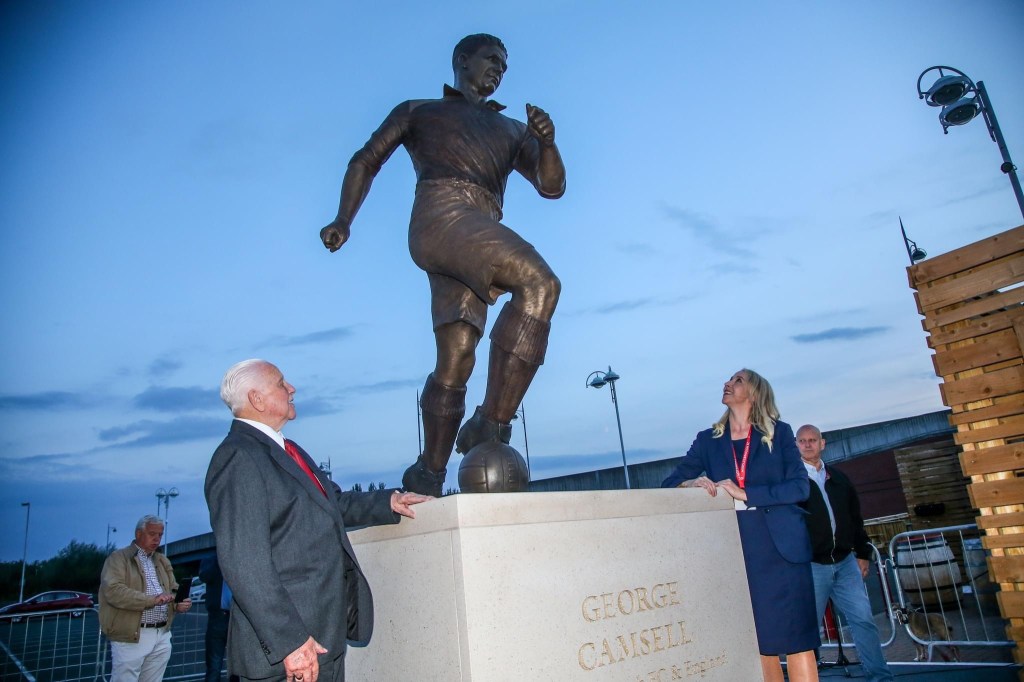 The statue was unveiled at 7.30pm on Friday 2 September to an audience including fans, club officials, and the Camsell family. It joins the George Hardwick and Wilf Mannion sculptures outside the ground.
