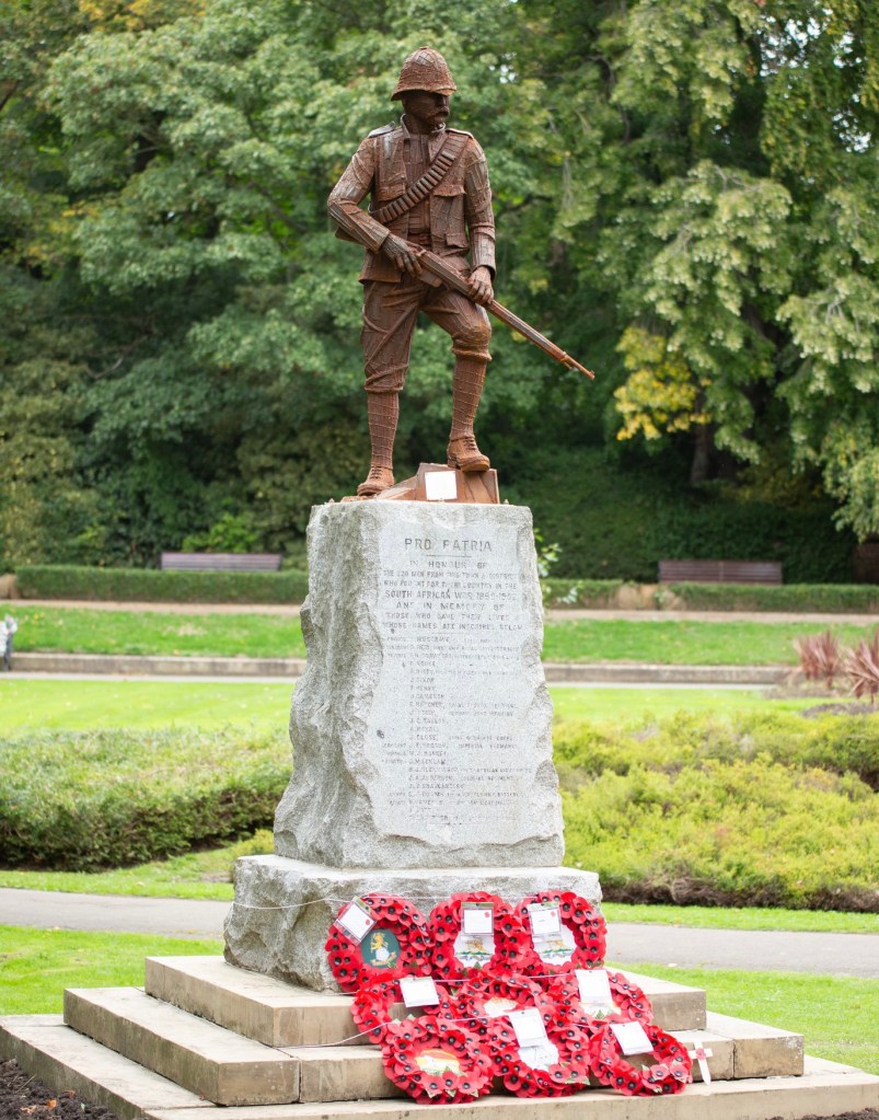 We’ve already written about the stolen Boer War statue in Hartlepool’s Ward Jackson Park. After its nocturnal theft in 1968, the plinth – bearing the names of the 23 Hartlepool men who died in the conflict – stood empty for over 50 years before local businessman Stephen Close decided to fundraise for a replacement, which was created by sculptor Ray Lonsdale.