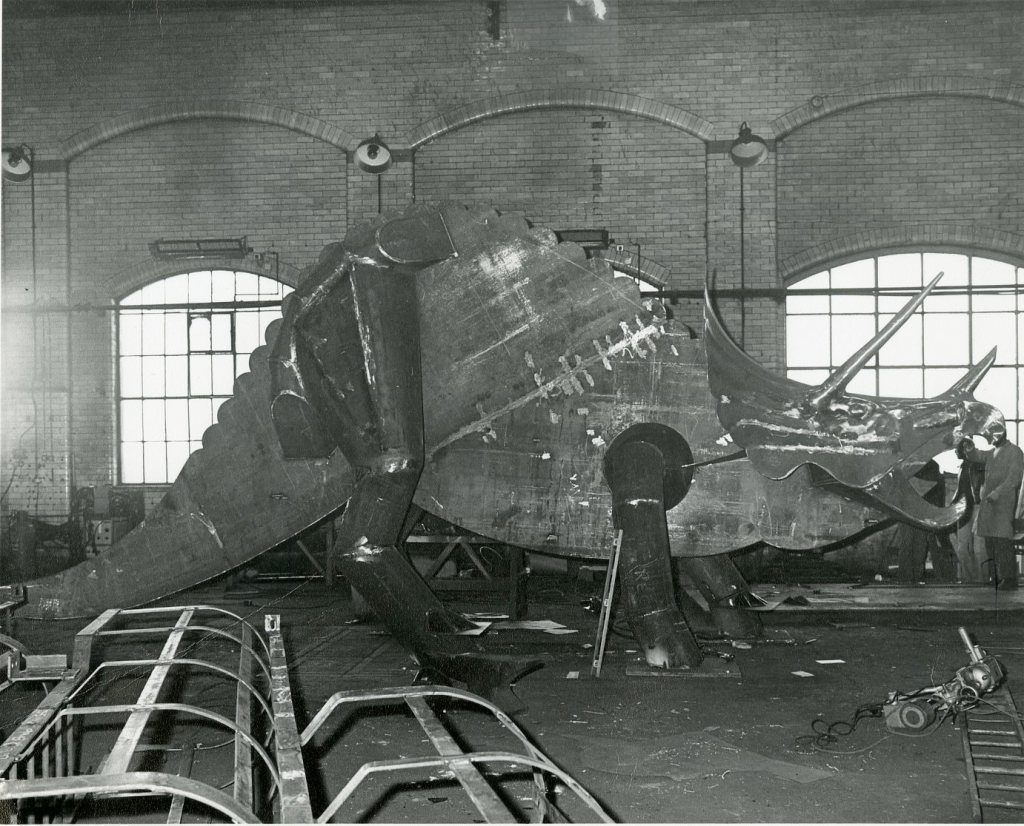 Here are some photographs of the stegosaurus sculpture’s creation from the John Buchan photo collection (Ref: ACC- 7224) courtesy of the ever-helpful Teesside Archives.