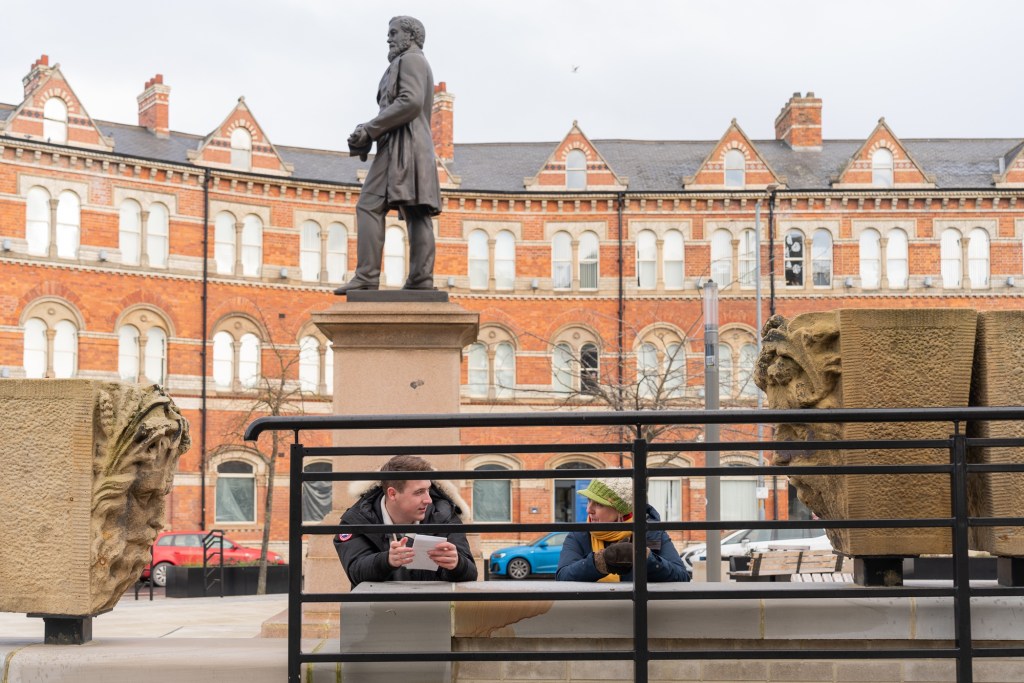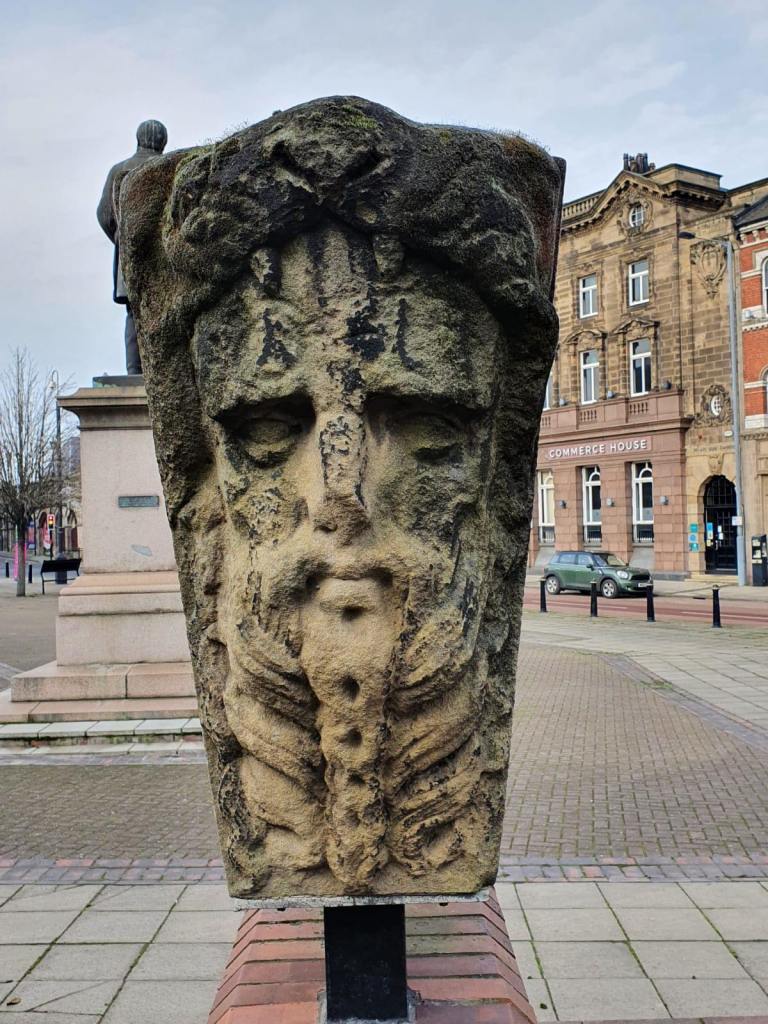 For years the heads stood in fairly haphazard fashion – some hidden by weeds and bushes. In 2022 the square was renovated thanks to Historic England’s High Street Heritage Action Zone program and Middlesbrough Council, with the statue of Henry Bolckow cleaned and the heads restored and re-sited.