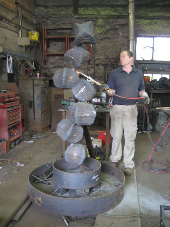 The diatoms were made (as shown above) using sand moulds which were then welded to the frame.