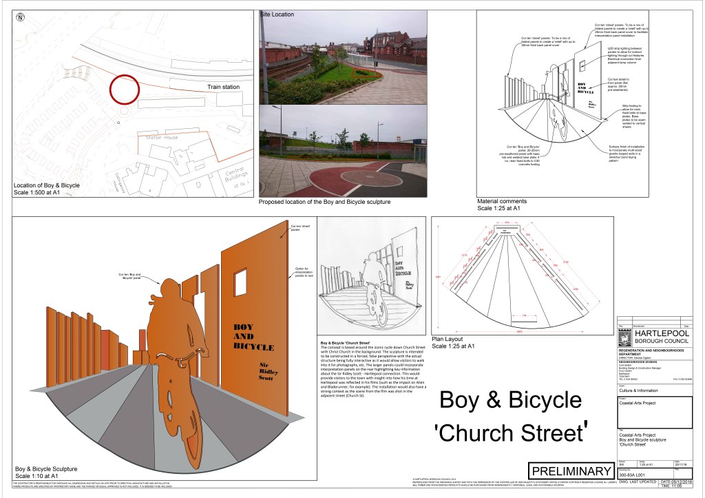 Designed originally by Steven Wilkie, ‘Boy and Bicycle’ is a sculpture commissioned by Hartlepool Council and brought to life by sculptor Bob Hollywood.
