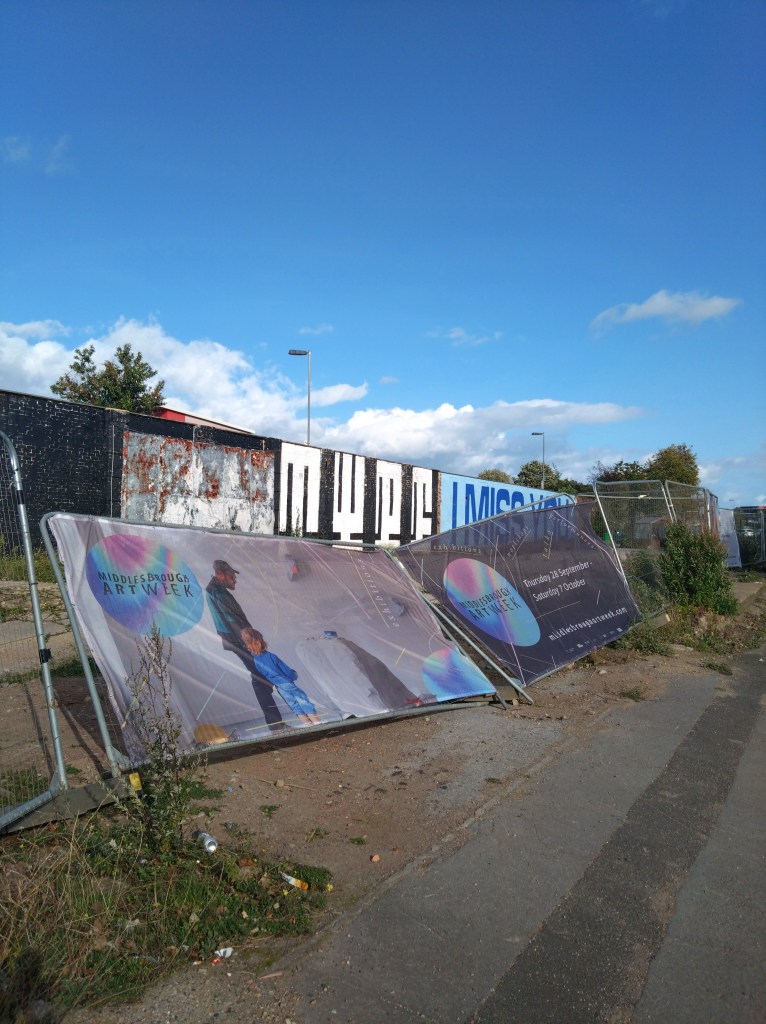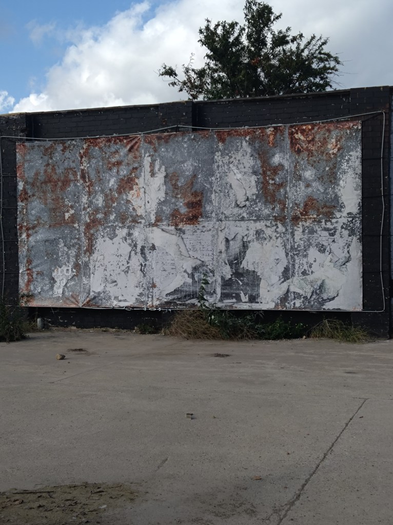 Authorless Bricolage Continued 2023, commissioned for Middlesbrough Art Week (MAW), takes the form of a large billboard in the Gallery Gardens outside The Auxillary on Station Street, Middlesbrough. Authorless Bricolage is an ongoing project by Cal Dyer – a term coined in 2014 whilst working on STEEL: