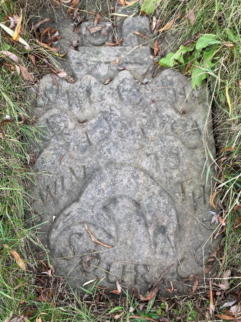 Showing a ship atop waves, the stone bears the following inscription: