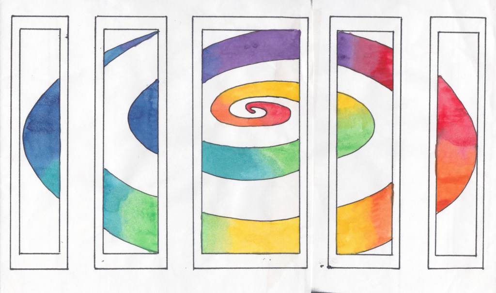 “As part of the project, the young people visited Robin Hood’s Bay, this is featured in the mosaic design, bottom left corner. The whirling rainbow design came from an idea to bring hope, colour and inspiration into the area, like a spell or mandala.”