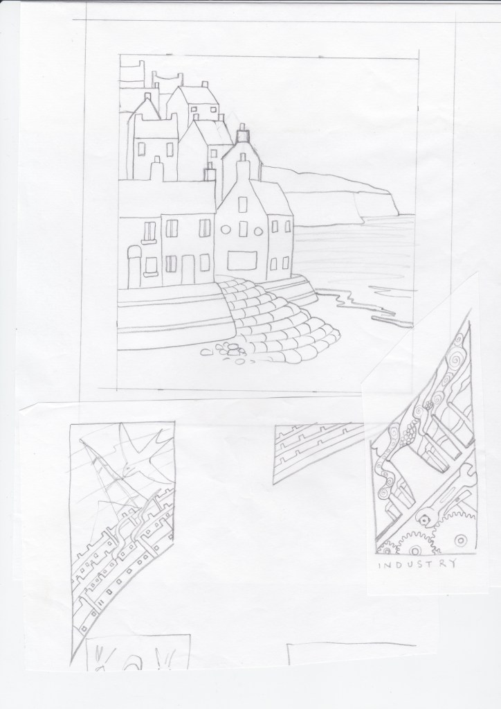 Robin Hood’s Bay depicted in the mosaic and the design phase