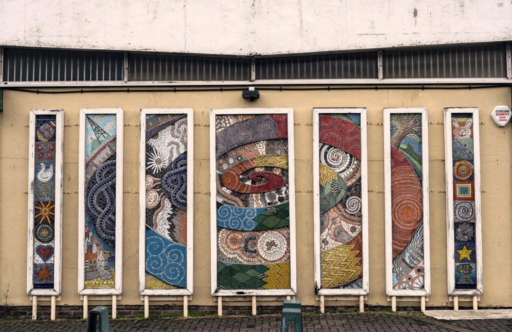 This stunning mosaic adorns the wall of a community hub near the now-demolished St. Agnes Church in Easterside, near Middlesbrough. The work of Helen Gaunt and Derek Mosey (who we’ll be writing more about soon), it was created with children from the area at both the local library and the Beechwood Youth and Community Centre.