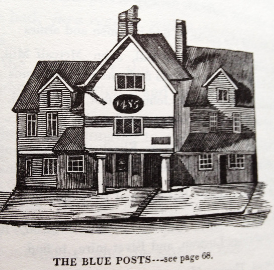 Home of the Blue Posts pub, this sign shows a broken column attached to a latticework frame. The yard’s name is supposed to originate from two marble columns bought by Tory politician Rowland Burdon to decorate his house on Main Street. The columns were originally said to belong to Stockton Castle, which was demolished in the 1660s.
