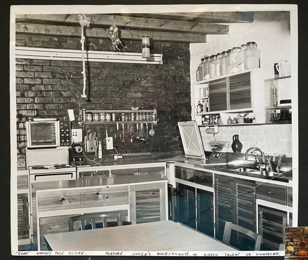 As the house was a bit of a fixer-upper, and Genevieve decided to take a woodworking course in order to do just that. Despite being belittled by her teacher, sniffy of women doing “men’s work”, she completed the course and soon designed and built the entire kitchen for her home1, before going on to renovate the rest of it using timber sold off when Sunderland’s old town hall was knocked down. Both Geni and her kitchen were featured in The Observer newspaper around this time.