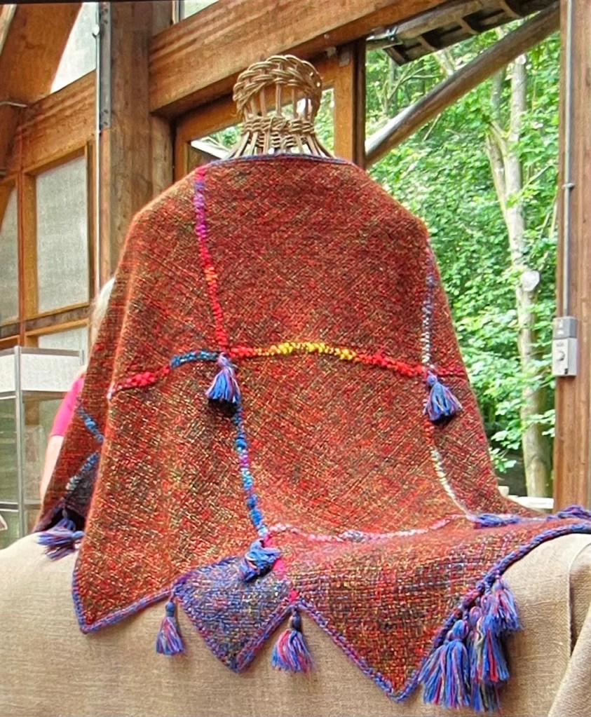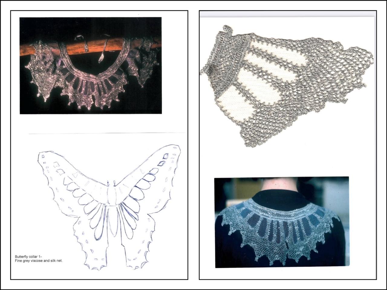 In the 21st century, Geni continued to be active. As the London 2012 Olympics approached, members of Weavers, Spinners and Dyers Guilds around the country were asked to create a piece of work using a brass ring of around 6” diameter, to represent the Olympic rings. Geni’s ring – an aerial performer created by needle-felting – was selected for the touring exhibition. She also made collars, shawls and other laceworks.
